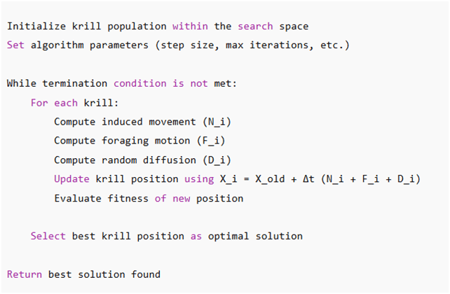 - Balanced Exploration and Exploitation – Krill movement ensures a wide search while refining solutions.