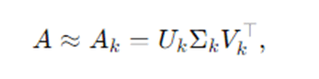 - Keep only the top k singular values and corresponding vectors to form a rank-k approximation Ak=UkΣkVk⊤ .