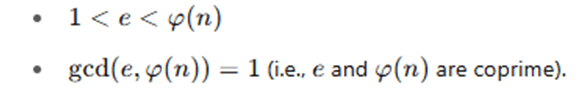 - Select an integer e such that: