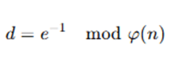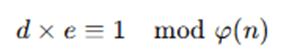 - Calculate d as the modular multiplicative inverse of e modulo φ(n):
