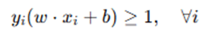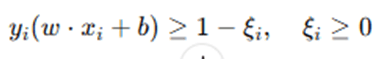 For real-world datasets, perfect separation is often not possible. To allow some misclassification, slack variables ξi are introduced, modifying the constraint to: